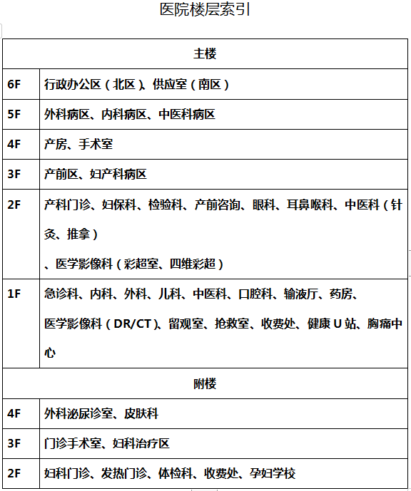 温馨提醒:医院一楼大厅、各电梯、各楼层均放有门诊各科室分布图,来院如遇到疑问可咨询工作人员。